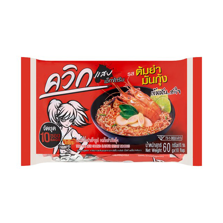 waiwai/ไวไว ควิก บะหมี่กึ่งสำเร็จรูป รสต้มยำมันกุ้ง 60 ก. ( แพ็ค 10 )