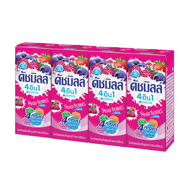 - ดัชมิลล์ นมเปรี้ยวยูเอชที รสเบอร์รี่รวม 4 ชนิด