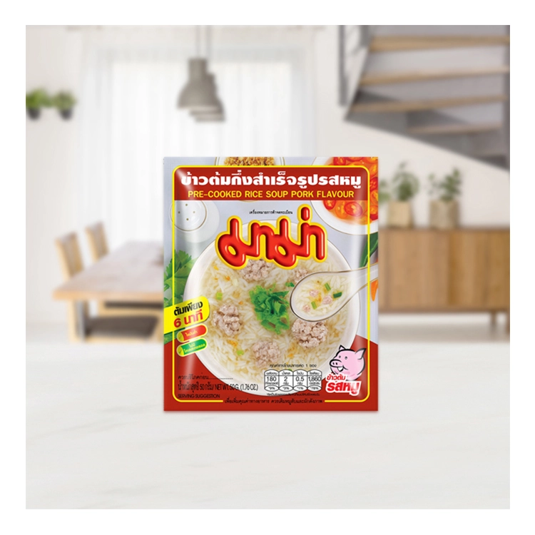 เอร็ดอร่อยไปกับ มาม่า ข้าวต้มกึ่งสำเร็จรูป รสหมู ผลิตภัณฑ์ข้าวต้มกึ่งสำเร็จรูปที่ผลิตจากวัตถุดิบคุณภาพดี รสชาติอร่อย อิ่มท้อง
