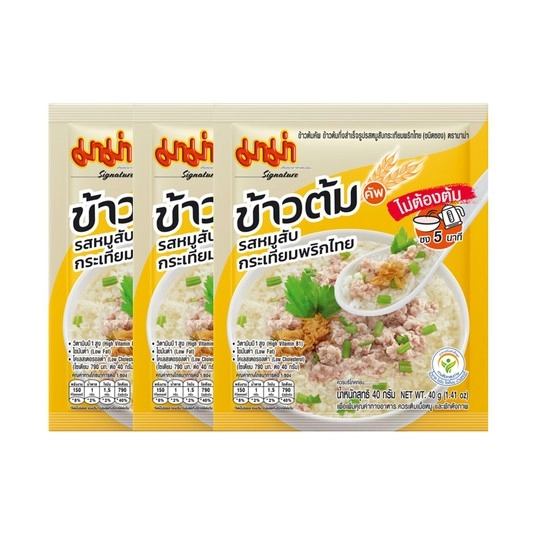 - มาม่า ข้าวต้มกึ่งสำเร็จรูป รสหมู