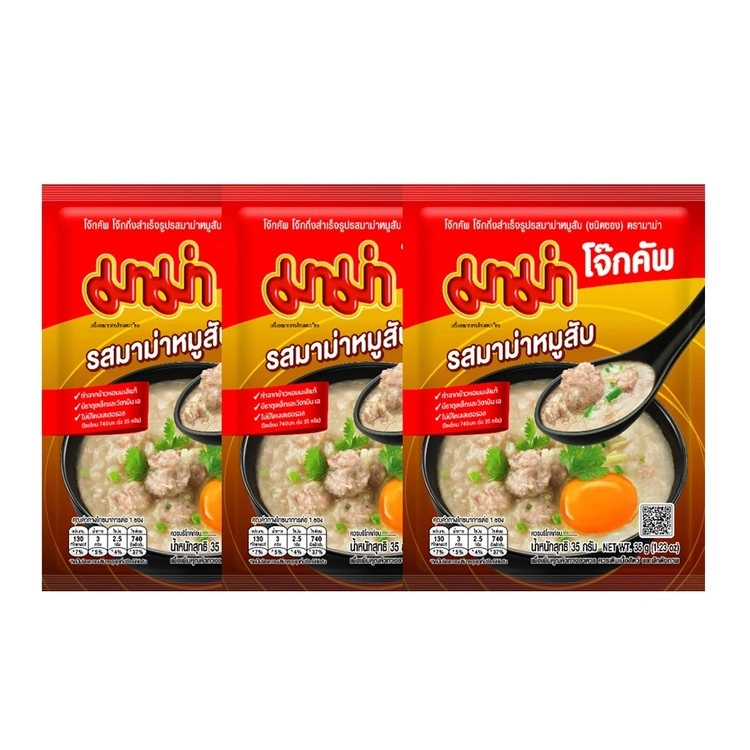 Mama/มาม่า โจ๊กคัพ โจ๊กกึ่งสำเร็จรูป รสมาม่าหมูสับ (ชนิดซอง) 35 กรัม (แพ็ค 3)