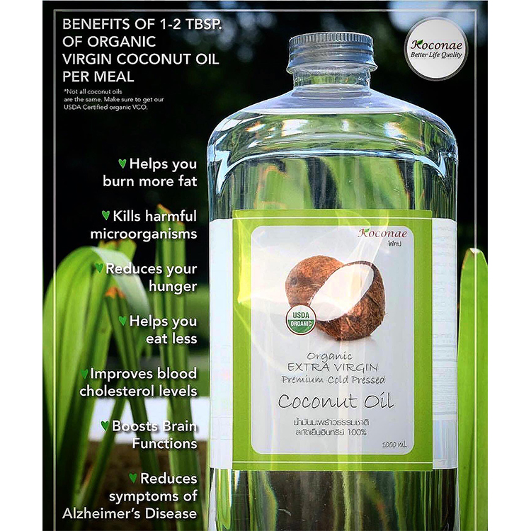 Koconae/โคโคเน่ น้ำมันมะพร้าวธรรมชาติ สกัดเย็นอินทรีย์ 100% 1,000ml