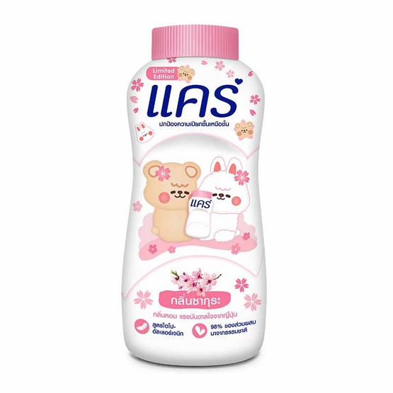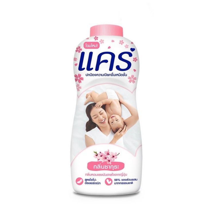 แคร์ แป้งเด็ก กลิ่นซากุระ ผลิตภัณฑ์แป้งเด็กที่ผ่านการทดสอบทางการแพทย์ผิวหนังว่าอ่อนโยน ไม่ระคายเคือง ไม่ก่อให้เกิดการแพ้ ปลอดภัยต่อผิวบอบบาง ช่วยให้ผิวหอมของลูกน้อยอ่อนละมุนกลิ่นดอกซากุระ