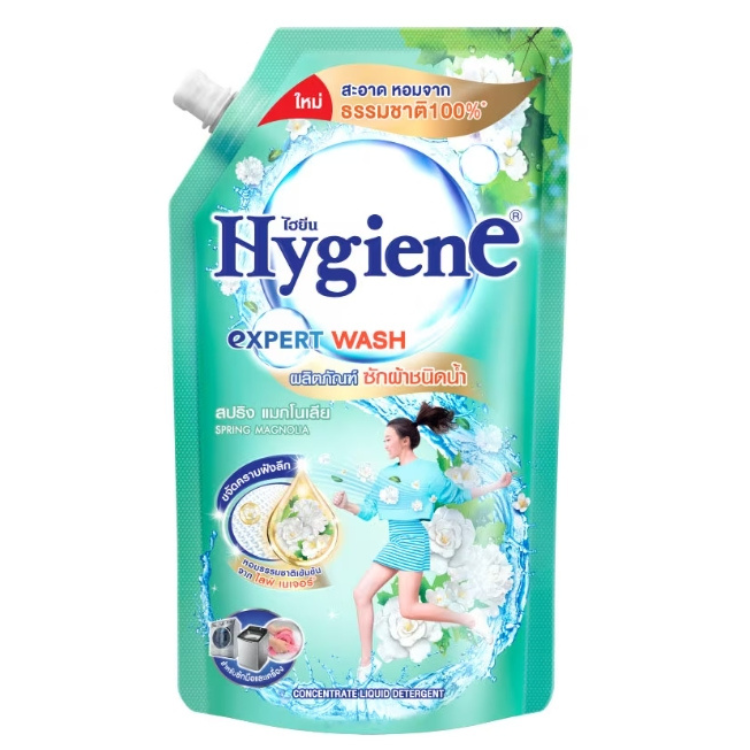 ไฮยีน ผลิตภัณฑ์ซักผ้าชนิดน้ำ กลิ่นสปริง แมกโนเลีย น้ำยาซักผ้าสูตรเข้มข้นพิเศษที่มีอานุภาพขจัดคราบสกปรกได้ดีในปริมาณที่น้อยกว่าน้ำยาซักผ้าทั่วไป อีกทั้งยังช่วยปกป้องเสื้อผ้าระหว่างวันด้วยพลังความหอมจากนวัตกรรม LIFE NATURE ที่สกัดกลิ่นหอมเข้มข้นจากส่วนประกอบของธรรมชาติ 100%