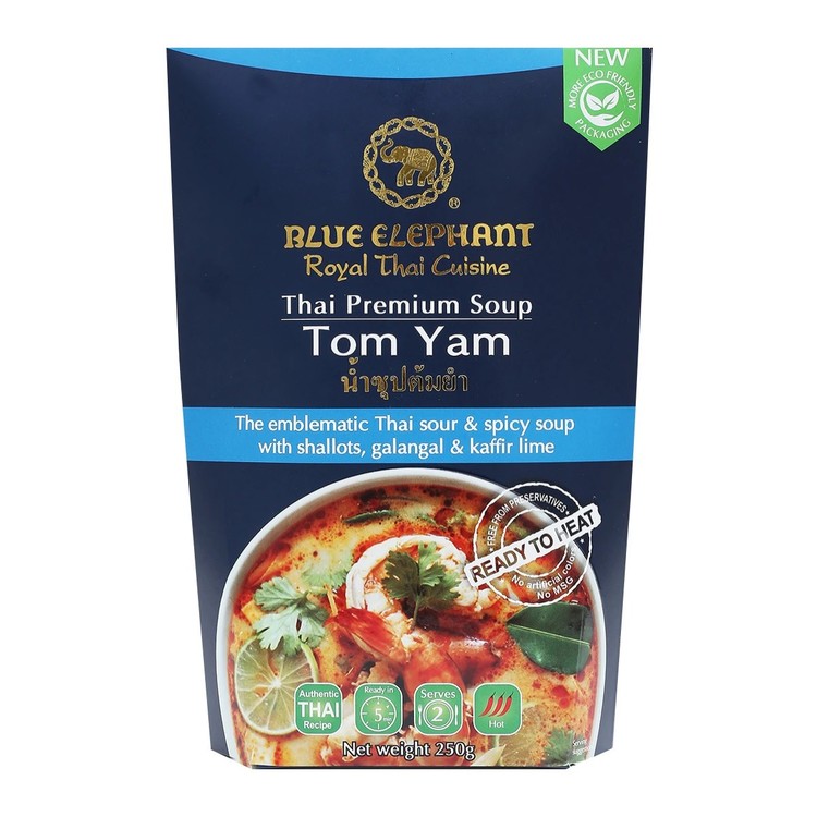 ซุปต้มยําไทยช้างบลูเอเลเฟ่นท์พร้อมอุ่นและมีหอมแดงข่าฝานและใบมะกรูดเพื่อเน้นกลิ่นหอมของซุปไทยแท้ๆของคุณ!