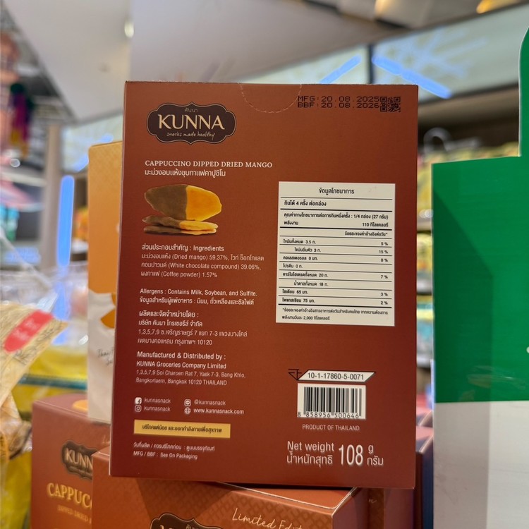 Kunna/มะม่วงอบแห้ง ชุบกาแฟคาปูชิโน 108 กรัม