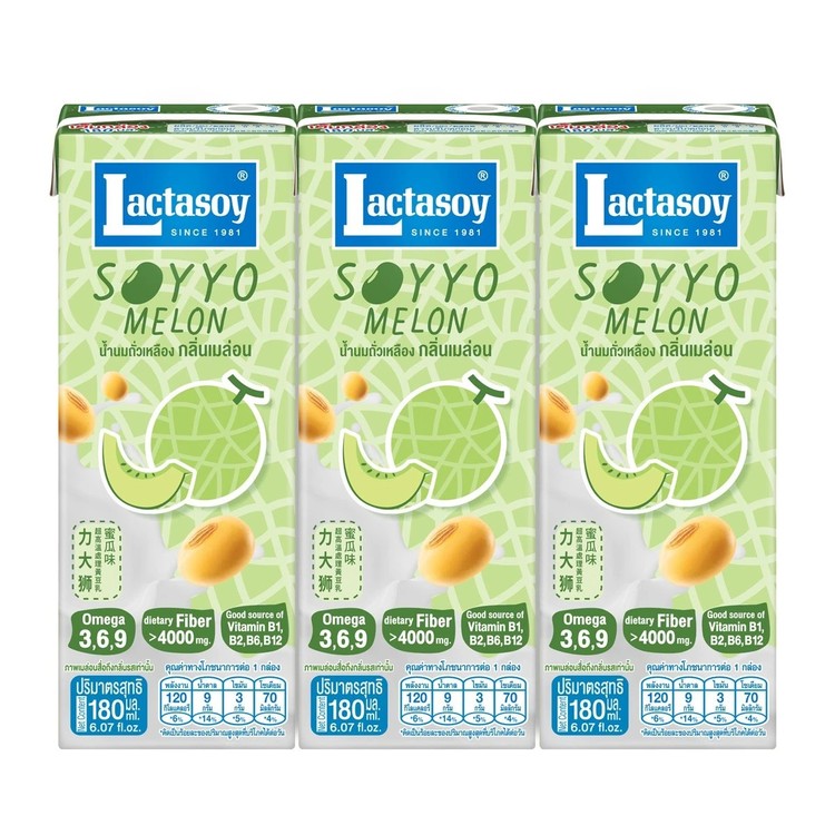Lactasoy/แลคตาซอย ซอยโย่ น้ำนมถั่วเหลือง กลิ่นเมล่อน 180 มล. x 3 ชิ้น