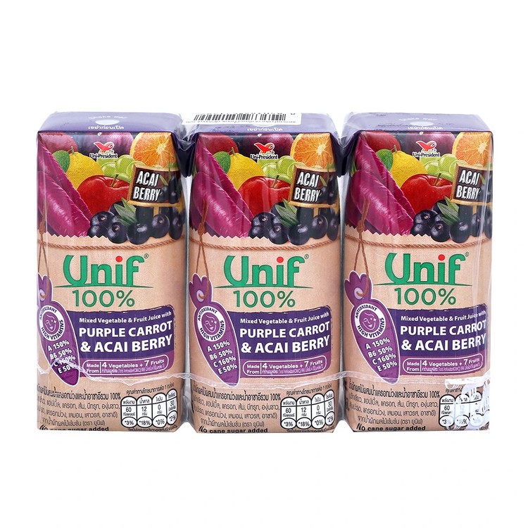 Unif/ยูนิฟ น้ำผักผลไม้ผสมน้ำแครอทม่วงและน้ำอาซาอีรวม 100% 200 มล. x 3 ชิ้น
