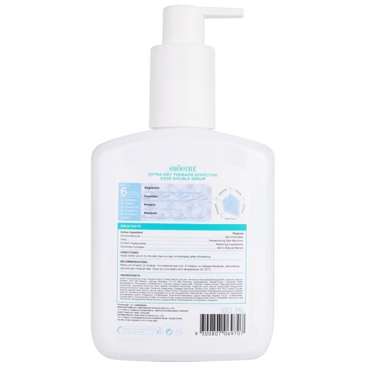 สมูทอี เอ็กซ์ตร้า ดราย เทอราพี ดับเบิ้ล เซรั่มที่สุดของนวัตกรรมเซรั่มบำรุงผิวกาย ให้ผลลัพธ์ที่เหนือกว่าโลชั่นทั่วไป 14 วันลดจุดดำดื้อ ผิวแข็งแรงกระจ่างใส เหมือนดริปวิตามินผิว ช่วยเสริมสร้างผิวให้แข็งแรง เปล่งประกายสุขภาพดี ราวกับการดริปวิตามินผิว ด้วยสูตรเข้มข้นที่ผสานคุณค่าจาก 4X Ceramide และส่วนผสมอันทรงพลัง ช่วยฟื้นบำรุงลึกถึงโครงสร้างผิว