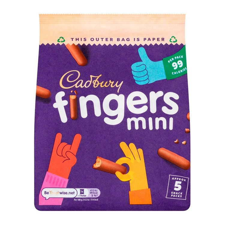 CADBURY/แคดเบอรี ฟิงเกอร์ส มินิ บิสกิตเคลือบช็อกโกแลตนม 96.5 ก.