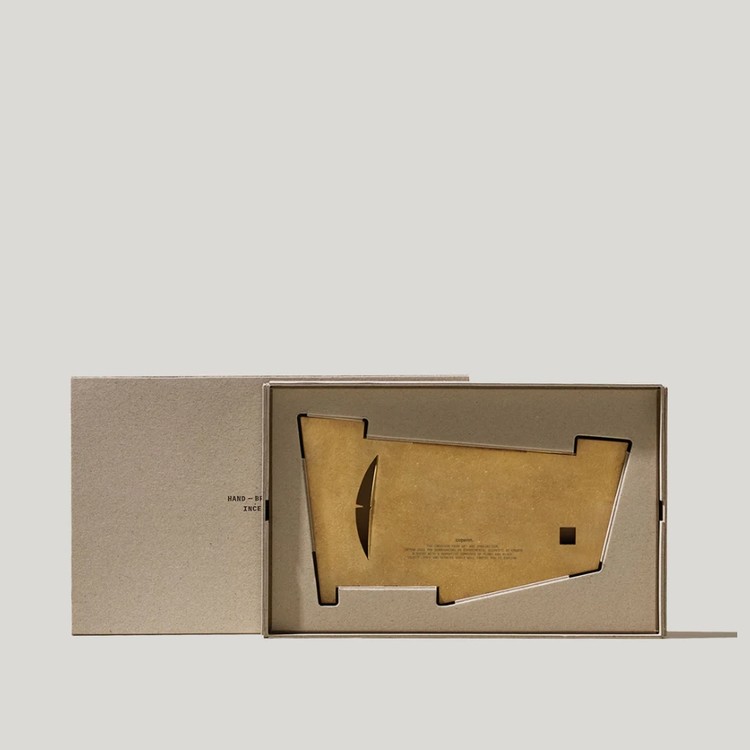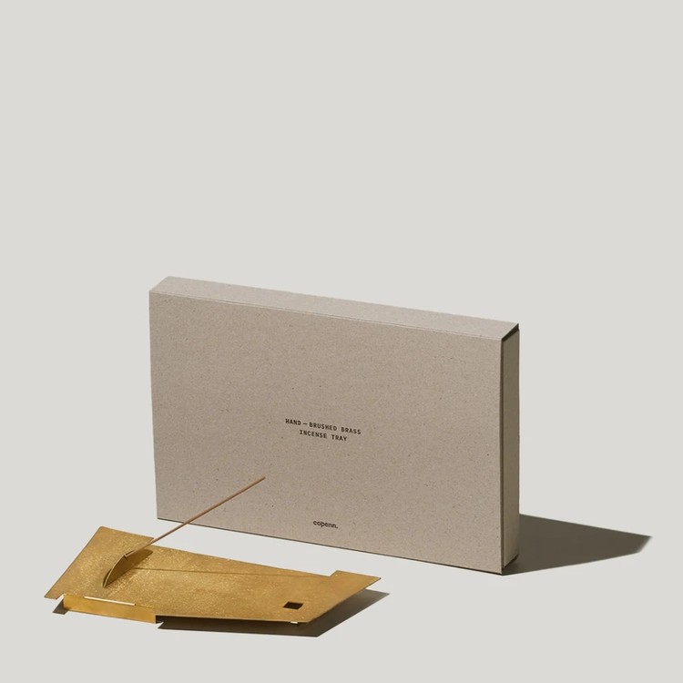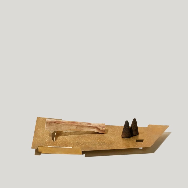 ถาดทองเหลืองสำหรับวางธูปนี้ได้รับอิทธิพลจากลัทธิคิวบิสม์ จึงเป็นเครื่องพิสูจน์ถึงฝีมือและการใช้งาน ถาดนี้ใช้แปรงปัดด้วยมือเพื่อเผยพื้นผิวที่เป็นเอกลักษณ์ รองรับธูปได้หลากหลายประเภท ทั้งแบบกรวย แบบแท่ง แบบปาโลซานโต และแบบแท่งสำหรับจุดธูป มอบบรรยากาศที่สะอาดและสงบ