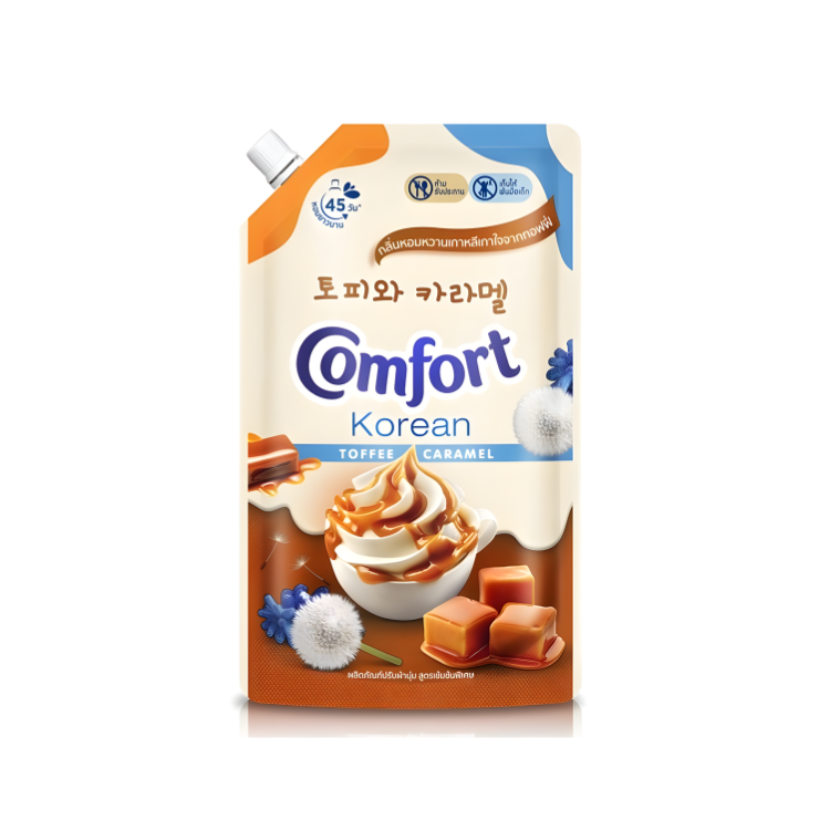 คอมฟอร์ท โคเรียน ดีไลท์ ผลิตภัณฑ์ปรับผ้านุ่ม ท๊อฟฟี่&คาราเมล แรงบันดาลใจจากน้ำหอมสไตล์เกาหลี ยกความหอมหวานสไตล์เกาหลีมาไว้ในผลิตภัณฑ์ปรับผ้านุ่มให้ความหอม อบอวลจากทอฟฟี่ พร้อมกลิ่นอบอุ่นของคาราเมล เพิ่มเสน่ห์ชวนน่าหลงรัก เกาหลี เกาใจ ทุกครั้งที่ใส่ ก็หอมฟิน ฟีลเหมือนได้ไปเที่ยวเกาหลีเลย