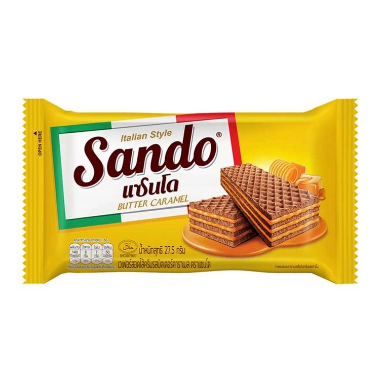 Sando/แซนโด เวเฟอร์สอดไส้ครีมรสบัตเตอร์คาราเมล 27.5 ก. แพ็ค 12NEW