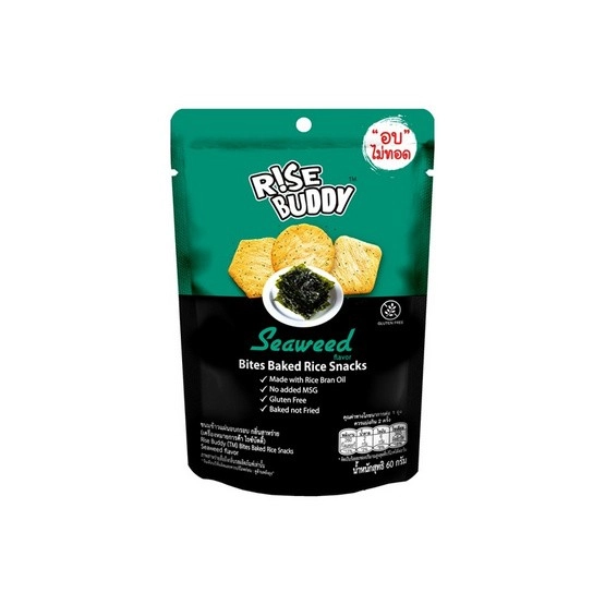 ไรซ์บัดดี้ ข้าวอบกรอบกลิ่นสาหร่าย ผลิตจากข้าวไทยแท้ ผ่านกระบวนการอบ ไม่ทอด ตัวขนมบาง กรอบ หอมกลิ่นสาหร่าย รสชาตินัว ๆ หวานเล็กน้อย พร้อมเกร็ดสาหร่ายบนตัวขนม เพิ่มรสสัมผัสในทุกคำ รสชาติกลมกล่อม ทานง่าย เหมาะกับรสนิยมของคนไทย