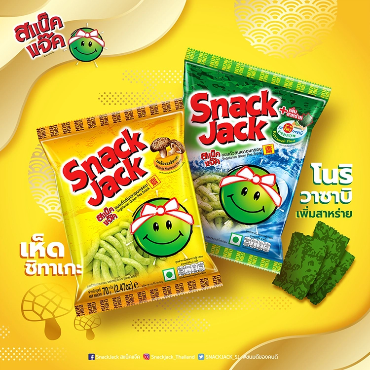 - สแน็คแจ๊คขนมถั่วลันเตาอบกรอบ 100% รสเห็ดชิตาเกะ