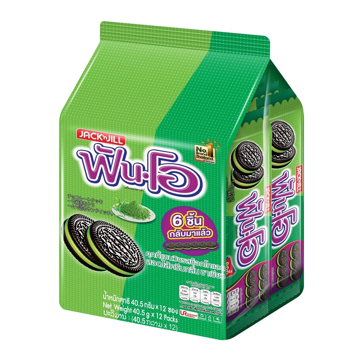 FUN-O Chocolate Flavored Sandwich Cookies Filled with Green Tea Flavored Cream