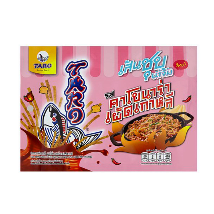 TARO/ทาโร ปลาสวรรค์ เส้นชุบน้ำจิ้ม รสคาโบนาร่าเผ็ดเกาหลี 18 กรัม