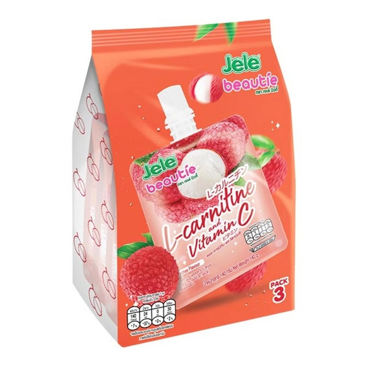 เจเล่ บิวตี้ เยลลี่พร้อมดื่มผสมน้ำผลไม้ เจเล่ บิวตี้ คอลลาเจน รสลิ้นจี่นม เยลลี่พร้อมดื่มผสมน้ำผลไม้ ทานง่าย ได้รสชาติของลิ้นจี่ ดูดเพิลนๆ ผิวสวยไม่รู้ตัว เพราะมีส่วนผสมของคอลลาเจน ที่ดีต่อผิว ช่วยสร้างความเเข็งเเรงเเละเพิ่มความยืดหยุ่นให้กับผิว ผิวสวยใสเปล่งปลั่งมีออร่า